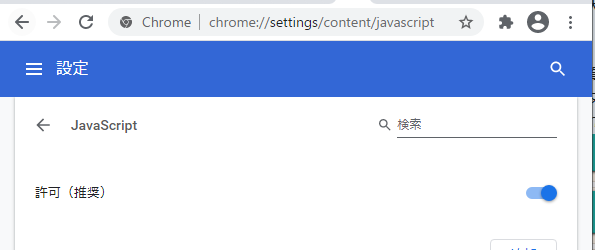 ・URLに"chrome://settings/content/javascript" を入力し、設定画面を開く
