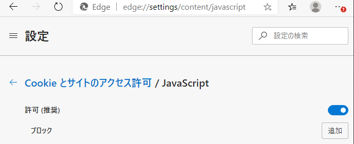 ・URLに"edge://settings/content/javascript" を入力、設定画面を開く